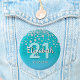 An elegant, glamorous and girly 21st birthday party button. Teal, blue green colored faux glitter with faux diamond sprinkle and a golden frame. Templates for a name, age 21 and a date. Date of birth or the date of the party/anniversary. White and teal colored letters. The name is written with a hand-lettered style script.
