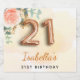 For an elegant and feminine 21st birthday birthday party. A golden watercolored background. Decorated with a rose gold and blush pink watercolored rose flower, floral, green eucalyptus leaves, sprigs, greenery and faux gold sprigs. Personalize and a name. Black and golden letters. The name is written with a modern hand lettered style script. Number 21 is written with a golden balloon style font.