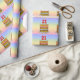 This colorful and cheerful birthday themed wrapping paper design features a cartoon-style depiction of a three-tier birthday cake having numeral-shaped candles on top showing the number “21“, along with the message “HAPPY 21ST BIRTHDAY,”, and a customizable recipient name. The background features a multicolored pastel rainbow spectrum inspired gradient pattern. Fun wrapping paper like this might be used when giving a gift or present in honor of somebody’s 21st birthday. [~Z0000622]