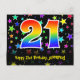 21st Birthday: Fun Stars Pattern, Rainbow 21, Name Postcard