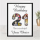 The front of this classical themed 21st birthday greeting card design features the number "21" filled in with 9 of your photos. The message "Happy Birthday," sits at the top with the two lower sets of text available for you to personalized. Make this a unique custom card for your best friend, daughter, partner, goalkeeper etc, the choice is yours. The inside features a personalized birthday greeting messages on both pages, or could perhaps be cleared and left blank if a message is to be written by hand instead. A customizable photo birthday card like this is a fun way to send a message in celebration of somebody’s twentieth birthday. The photo's used as examples are all square images with the main figure approximately central. The design is available in a full range of sizes right up to the giant size card. Pop in to our store for more great birthday cards and gift ideas.