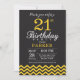 21st Birthday Invitation Black and Yellow Chevron