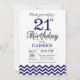 21st Birthday Invitation Navy Blue Chevron