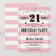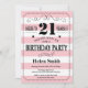 21st Birthday Invitation Pink and White Stripes