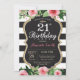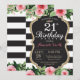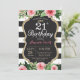 21st Birthday Invitation for women girl teen lady. Black and Gold Birthday Party Invite. Gold Glitter. Pink Watercolor Floral Flower. Black and White Stripes. Chalkboard. Printable Digital. For further customization, please click the "Customize it" button and use our design tool to modify this template.