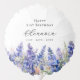 Custom birthday decorations for a July birthday party. Blue larkspur (delphinium) is the birth flower for that month. It forms a pretty watercolor bottom border on this floral personalized balloon. The birthday celebrant's name, age and birthdate are placed above it using elegant calligraphy and typography. All text is editable.