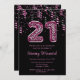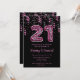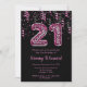 This elegant and glamorous birthday invitation features the number 21 in leopard print with pink confetti. The text combines handwritten script and modern sans serif fonts for a classy and sophisticated look.