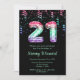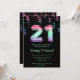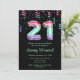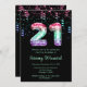 This elegant and glamorous birthday invitation features the number 21 in mermaid scales with pink, green and purple confetti. The text combines handwritten script and modern sans serif fonts for a classy and sophisticated look.