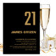 21st Birthday Modern Minimalist Black Gold Party Invitation