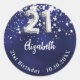 A sticker for a 21st birthday party. A navy blue background color with faux silver stars. The blue color is uneven. Add your name, text.
