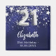 For a 21st birthday party. A navy blue background color with faux silver stars. The blue color is uneven. Add your name, text.