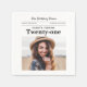 Say happy birthday with this unique Newspaper style birthday napkin. Custom with your own photo and name. Designed to resemble a vintage newspaper in classic black and white style, it's a cute and elegant way to celebrate turning 21.