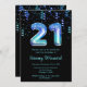 This elegant and glamorous birthday invitation features the number 21 in ocean print with blue and green confetti. The text combines handwritten script and modern sans serif fonts for a classy and sophisticated look.