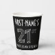 This elegant Roaring Twenties era inspired art deco look birthday themed paper cup design features a customizable name, plus the message “21ST BIRTHDAY PARTY!”. The number “21ST” has a fancy geometric lined appearance. Stylish paper cups like this might be fun to use at a birthday party in honor of somebody’s twenty-first birthday, or some other 21st event. [~Z0000658]