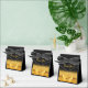 Elegant, classic, glamorous and feminine style favor box. A gold colored ribbon and bow with golden glitter and sparkle, a bit of bling and luxury for a 21st birthday party. Black background. With the text: Thank You! on front.