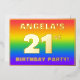 The front of this exciting twenty-first birthday celebration/party foil invitation card design features an editable name, a large number “21st”, the message “BIRTHDAY PARTY!”, and a border. The background of the front features an upbeat, multicolored, rainbow spectrum inspired gradient pattern. The back features personalized details about the event, such as the date, time, venue/location, and any other important information. Customized invitations like these might be a fun way to invite guests/attendees to a birthday party being held to honor somebody’s 21st birthday. [~Z0000599]