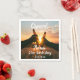 A napkin for a 21st birthday party for a guy. Photo of two hands holding bottles of beer against the evening sunset. Keep the photo or add yours. With the text: Cheers to, templates for a name age 21 and a date. Date of birth or the date of the party.