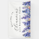 Elegant summer watercolor blue larkspur flowers create a beautiful floral border at the bottom of this birthday party welcome banner, larkspur or delphinium flowers are the July birth flower. A trendy font combination gives it a modern aesthetic. All of the text is editable.