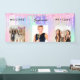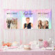 For a 21st birthday as a party welcome banner or wall decoration. A collage of 3 of your photos of herself friends, family, interests or pets. Personalize and add her name, age 21 and a date. Date of birth or the date of the birthday party. A trendy holographic colored background in purple, pinkand mint green. Decorated with drips, paint dripping look. The word: Welcome (x2) Purple and black colored text.