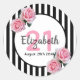 A sticker for a 21st birthday party. Classic slim black and white vertical stripes as background. With girly and feminine pink roses as decoration.