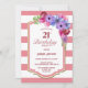 21st Birthday Pink Striped Purple Floral Party Invitation