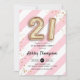 21st Birthday - Pink Stripes Gold Balloons Invitation
