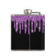A gift for a girly and glamorous 21st birthday party. A classic black background with purple faux glitter drips, paint dripping look. The text: The name is written in violet with a modern hand lettered style script. Personalize and add a name, age 21 and a date.