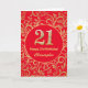 21st Birthday Red and Gold Floral Pattern Birthday Card. For further customization, please click the "Customize it" button and use our design tool to modify this template.