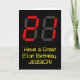 The front of this silly and nerdy birthday-themed greeting card design features a large number "21" having a red seven segment digital display inspired appearance, along with the message "Have a Great 21st Birthday," and a personalized name, on a black colored background. The inside features an editable birthday greeting message, or could perhaps be cleared and left blank if a message is to be written by hand instead. A personalized birthday card like this might be a fun way to send a message in celebration of somebody’s twenty first birthday. [~Z0000386]