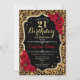 21st Birthday - Red Roses Leopard Print Invitation