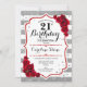 21st Birthday - Red Silver White Stripes Roses Invitation