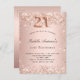 For an elegant 21st birthday party. A rose gold gradient background. Decorated with rose gold faux glitter dust. Personalize and add a name and party details. The name is written with a hand lettered style script. Number 21 is written with a balloon style font.