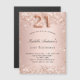 A magnet invitation for an elegant 21st birthday party. A rose gold gradient background. Decorated with rose gold faux glitter dust. Personalize and add a name and party details. The name is written with a hand lettered style script. Number 21 is written with a balloon style font.