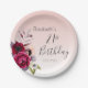 21st birthday rose gold blush pink florals paper plates