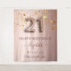 A tapestry for a girly and glamorous 21st birthday party. A rose gold, pink gradient background with elegant faux gold dripping stars. With the text: Happy Birthday. Personalize and add the name of the birthday girl, and your names as her friends. The name is written in dark rose gold with a modern hand lettered style script with swashes. Number 21 is written with a trendy balloon style font. To keep the swashes only delete the sample name, leave the spaces or emoji's in front and after the name. Can be used as a welcome banner, wall decor for the party or as a photo booth backdrop.