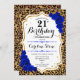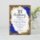 21st Birthday - Royal Blue Gold Leopard Print Invitation