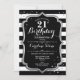 21st Birthday - Silver Black White Stripes Invitation