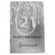Elegant, classic, glamorous and feminine 21st birthday party. A faux silver looking background. Decorated with faux glitter drips, paint dripping look. Personalize and add a name. With the text: Happy Birthday. The name is written with a modern hand lettered style script. Number 21 is written with a balloon style font.