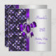 21st Birthday Silver Sequins Purple Diamond Bow Invitation