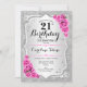 21st Birthday - Silver Stripes Pink Roses Invitation