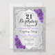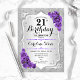 21st Birthday - Silver Stripes Purple Roses Invitation