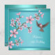 21st Birthday Teal Blue Asian Pink Flowers Bird Invitation