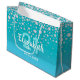 An elegant and glamorous 21st birthday gift bag. Teal, blue green gradient colored faux glitter with faux diamond sprinkle. Templates for a name, age 21 and a date. Date of birth or the date of the party/anniversary. White and teal colored letters. The name is written with a hand-lettered style script.
