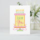 A tall yellow and pink birthday cake with flowers that says "thank you". The back of the card is a present with a thank you message and customized name.
