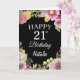 21st Birthday Watercolor Floral Flowers Black Card with personalized name and age. For further customization, please click the "Customize it" button and use our design tool to modify this template.