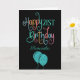 Wish a happy twenty first in multicolor style! Happy Birthday is set in a fun multicolor typography in shades of teal, pink, blue, coral and orange, on a classic black background. The age and your recipient’s name are in a cordinating typeface. You can change the greeting inside to your own words and easily personalize the age and name on the front. Faux sparkle teal balloons add the perfect finishing touch on the front!