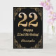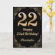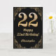 22nd Birthday Black and Gold Glitter Frame Card