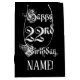 This opulent and lavish birthday-themed gift bag design features the message “Happy 22nd Birthday,” in formal script style text, on a black colored background. It also features a custom recipient name. An elaborate gift bag like this might be used when giving a gift or present in honor of somebody’s 22nd birthday. [~Z0000557]