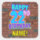 This fun birthday themed square sticker design features the message “HAPPY 22ND BIRTHDAY,” having a colorful, vibrant, graffiti-inspired look, plus a customizable recipient name. The background features a pattern inspired by the look of a brick wall. Fun, vibrant, personalized stickers like this might be given as a birthday present, or used while wrapping presents/gifts, or perhaps used as a birthday party decoration when celebrating somebody’s twenty second birthday. [~Z0000535]