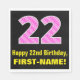This joyful and fun birthday-themed paper napkin design features a large number "22" with a striped pattern containing heart shapes colored dark pink and light pink. It also features the birthday greeting message "Happy 22nd Birthday,", and an editable name. Paper napkins like this might be nice to have at a party being held in honor of somebody’s 22nd birthday. It might also be a fun choice for somebody who has a birthday that falls on Feb. 14 (Valentine's Day), due to its loving heart symbols and colors. [~Z0000436]